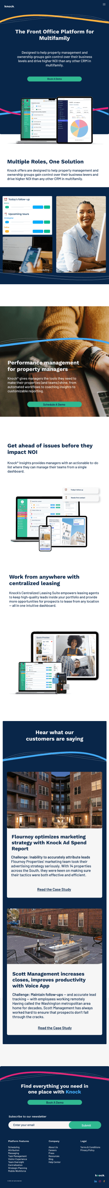 KnockCRM's public rebrand and website launch was sunsetted due to the RealPage, Inc. acquisition in October 2022.